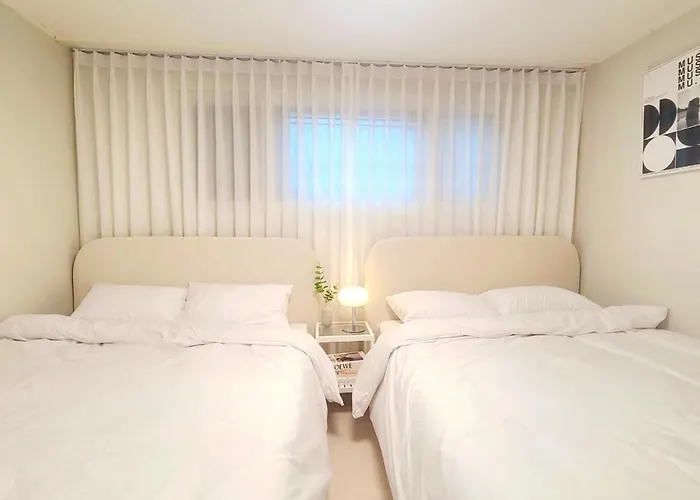 Reserveringen voor Song Stay-공항철도, 홍대입구역 7분, 연트럴파크 5분, 6명, 2룸, 3퀸베드, 각방 에어컨, 세탁건조기, Wifi, 연남동, 외국인 전용 beschikbaar bij 'kamers'